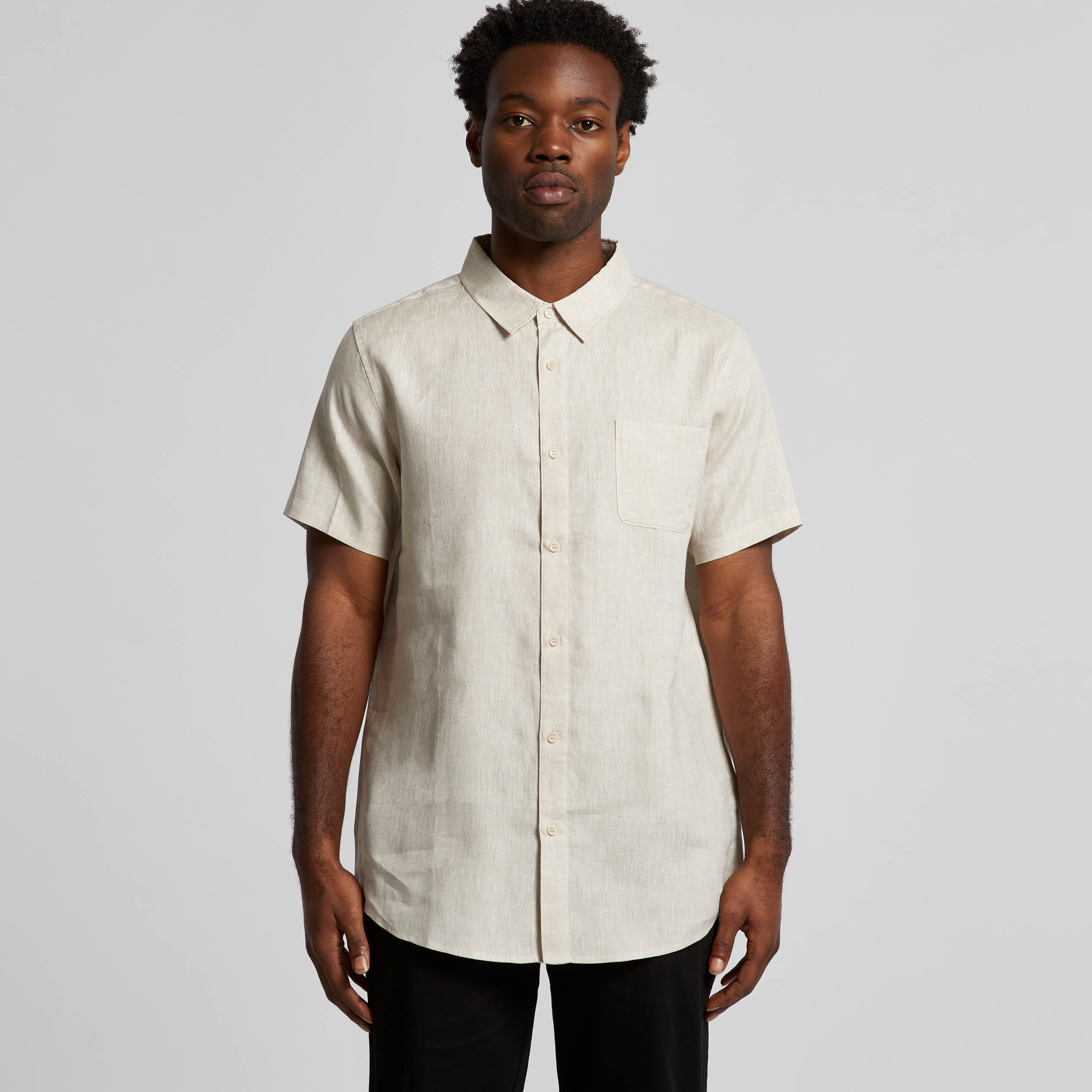 Short sleeve button up shirt, two chest pockets with pen channel, tonal buttons, side seamed, back yoke with hang loop, preshrunk to minimise shrinkage.