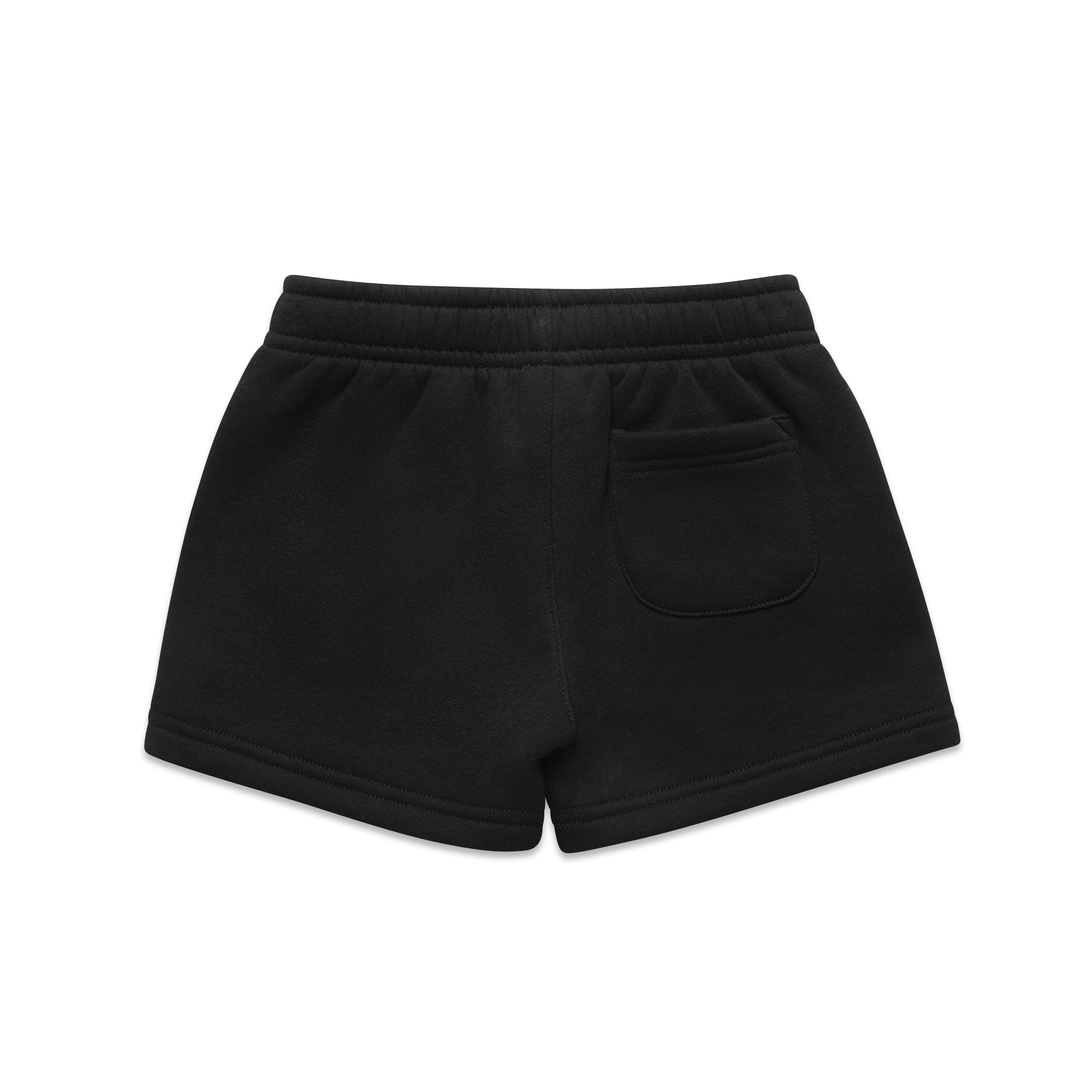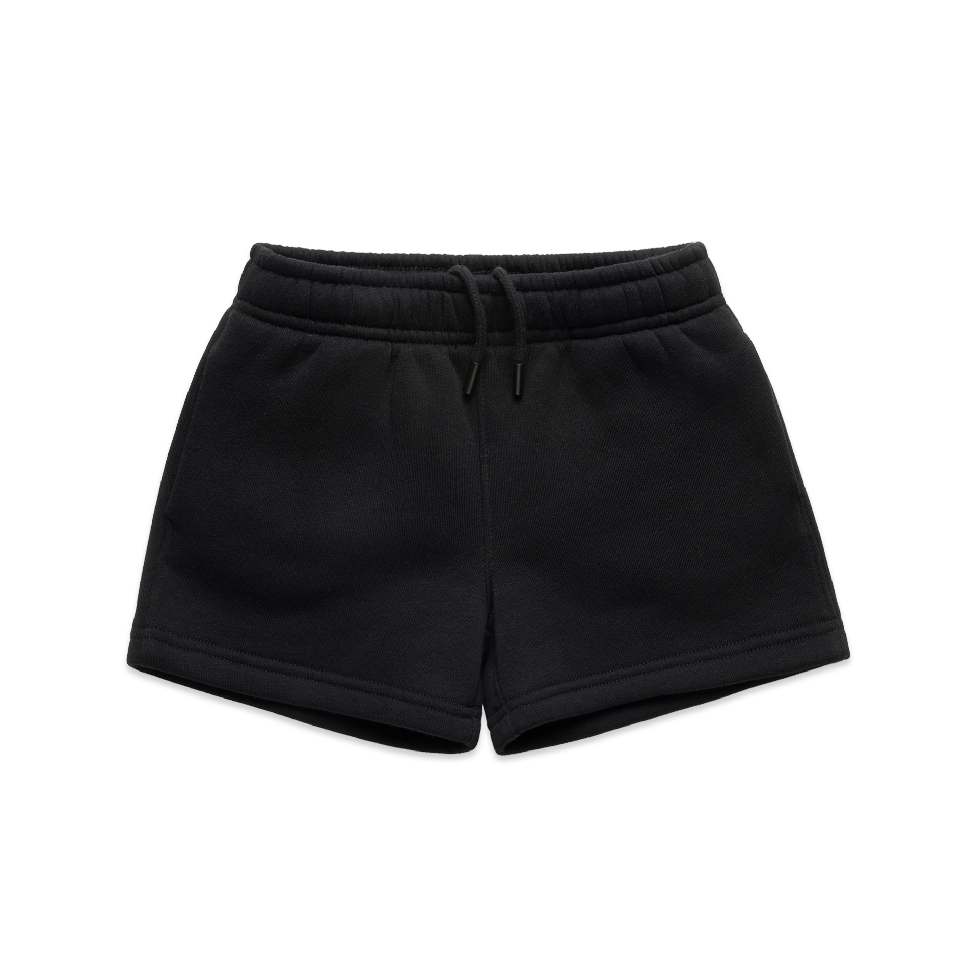 Construction: Sweat shorts, self-fabric elasticated waistband, tonal internal drawcord, 2 side pockets, single pocket at back, double needle hems
